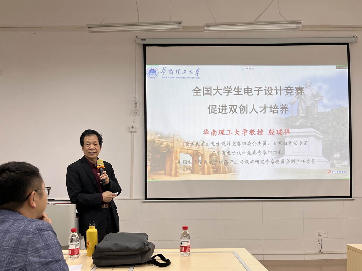 为培养学生的创新协作和工程实践能力,营造良好的科创氛围,3月30日,电子与信息学院在白云校区第四实训楼311举办了“2023年全国大学生电子设计竞赛宣讲动员会”。会议邀请华南理工大学教授、全国大学生电子设计竞赛组委会委员和专家组责任专家、广东省大学生电子设计竞赛专家组组长殷瑞祥作了题为《全国大学生电子设计竞赛促进双创人才培养》的报告。宣讲会由电子与信息学院副院长李亚主持,学院教师和本科生近150人以线下线上结合的方式参加。