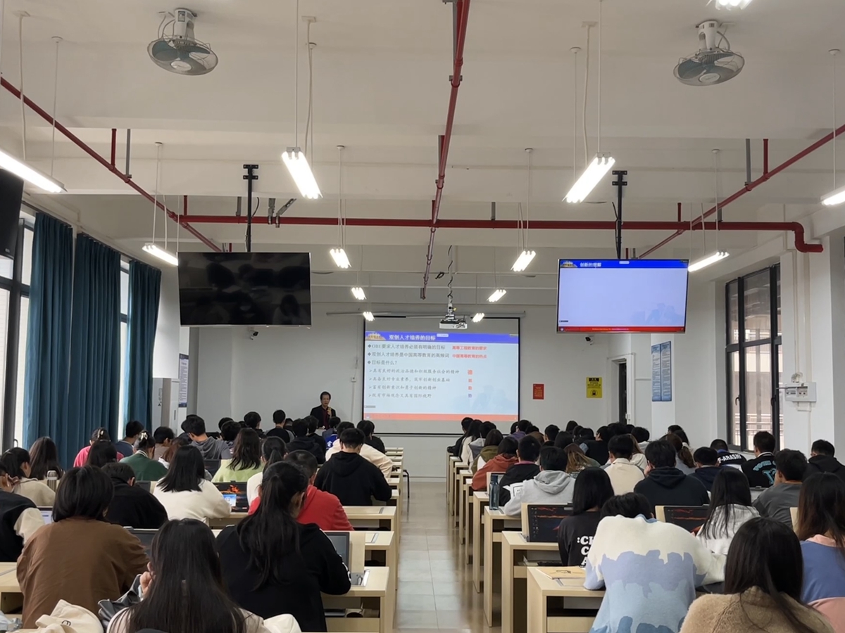 殷瑞祥教授以“全国大学生电子设计竞赛”备赛解析为主要内容,从双创人才培养角度阐述了对科学创新、技术创新、工程创新及创业核心要素的理解,表示“全国大学生电子设计竞赛”能有效锻炼大学生的技术和工程创新能力。随后,殷瑞祥教授结合个人多年评审和指导竞赛经验,为在场师生剖析了比赛组织概况、竞赛目的、赛题要求、竞赛流程等内容,着重讲解了大赛选题的原则和命题趋势,鼓励师生尽早投入比赛状态,做好充足的备赛工作。最后,殷瑞祥教授分享了对赛教融合培养模式的思考,鼓励老师以竞赛内容更新日常实验内容,师生协同发展、相扶共长。报告结束后,殷瑞祥教授与师生进行了互动,现场讨论氛围活跃,师生热情度十分高涨。