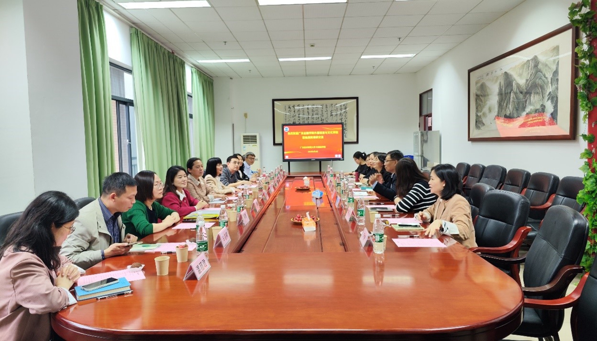 双方就学科建设和发展、专业特色凝练、课程体系建设、大学英语分级教学管理、实践教学推行、学生竞赛指导及高层次人才队伍建设等工作中存在的问题和先进经验、先进做法进行了深入的交流和探讨。会后,广东金融学院外国语言与文化学院一行参观考察了外国语学院的VR虚拟仿真实验室、同声传译实验室、智慧实验室等实验室,了解了实验室建设和实训教学执行情况并给予高度评价。