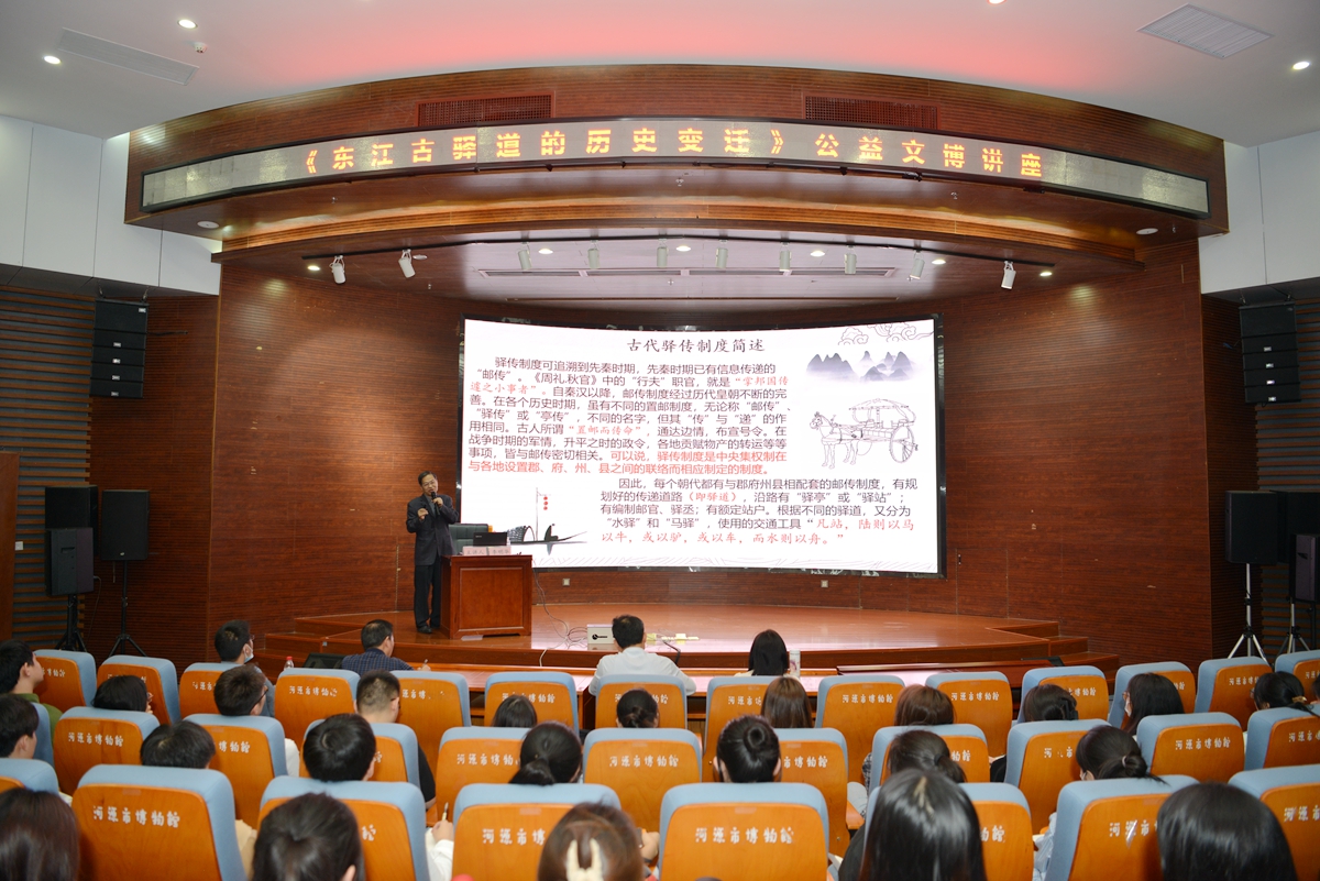 4月11日,美术学院和河源市博物馆共同举办的公益文博讲座“东江古驿道的历史变迁”在河源市博物馆一楼学术报告厅开讲,主讲人为惠州岭东文史研究所副所长、河源市博物馆之友李明华老师。河源市博物馆负责人、分管宣传和信息技术工程的副馆长以及我校河源校区60余名师生共同聆听了讲座。