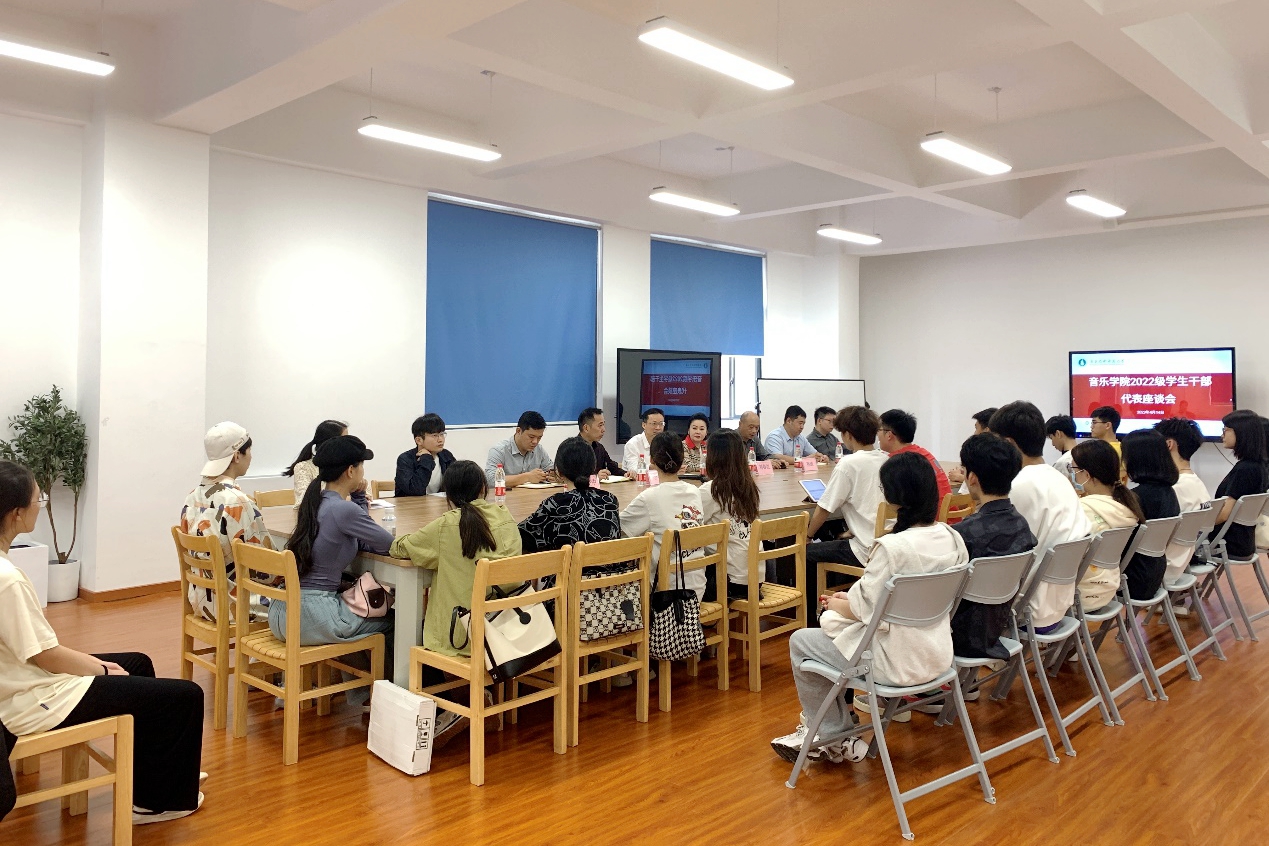 为贯彻落实学校学习贯彻习近平新时代中国特色社会主义思想主题教育动员会会议精神,音乐学院领导班子成员带领相关老师到河源校区开展学生工作调研。4月14日,音乐学院在河源校区求新楼315教室召开2022级学生干部代表座谈会,听取同学们的意见建议。学院党委书记黄锡炳、院长刘春红,河源校区管委会副主任李冲、学生事务部部长王校中,音乐学院教师代表、河源校区辅导员及部分学生干部代表参与了此次调研交流会。