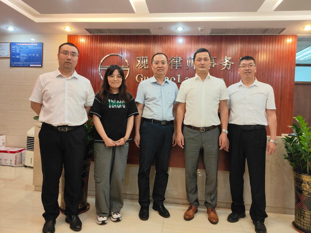 为推动产学研协同育人,拓宽法学专业学生的实习就业渠道,6月2日,法学与知识产权学院党委书记许建鑫、法学专业负责人曾晓昀、立法研究中心主任柳建启一行前往北京观韬中茂律师事务所广州分所进行拓岗交流,得到广州分所主任刘文洪的热情接待。