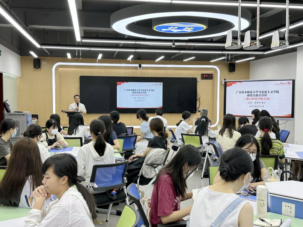 为全面做好2024年度马克思主义学院硕士研究生招生宣传及咨询服务工作,进一步优化生源结构,提升生源质量,6月15日上午,马克思主义学领导班子一行来到韩山师范学院开展研究生招生宣讲会。会议由韩山师范学院学生处组织,来自该校政法学院、历史文化学院2020级本科思想政治教育、历史学、法学、档案学等专业的学生参加。