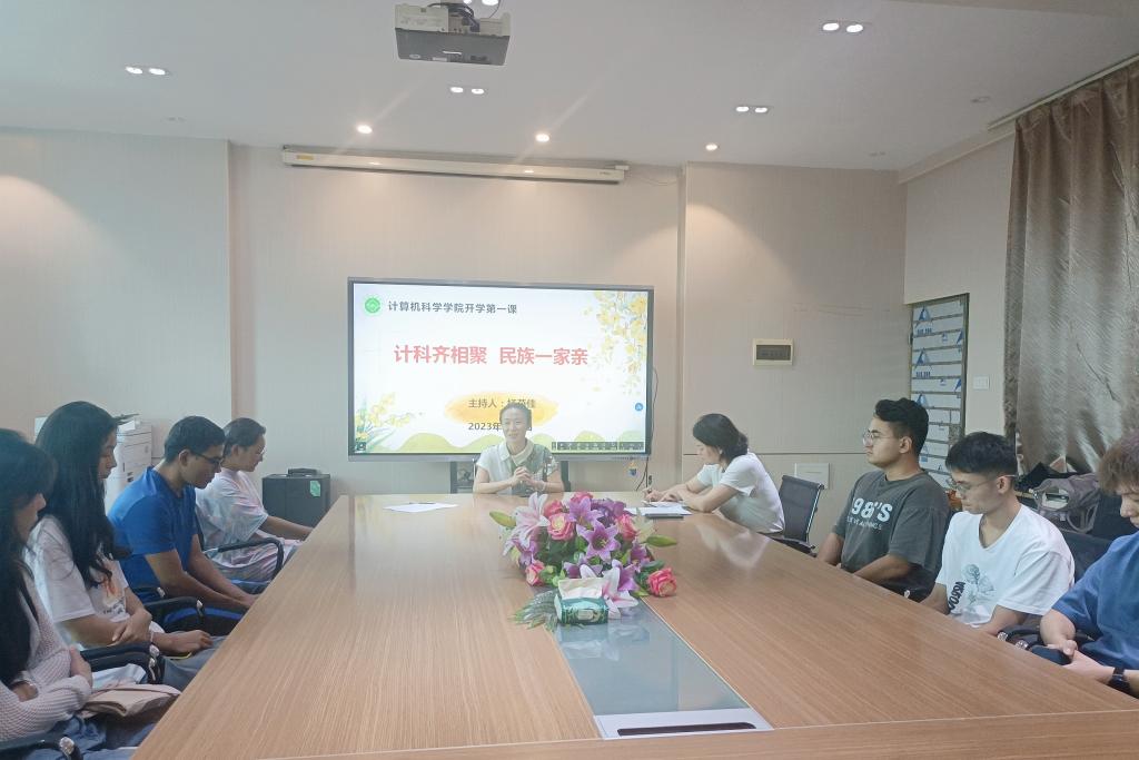 9月15日,杨燕佳在东校区给少数民族学生上开学第一课,她亲切询问了大二大三同学的学业与生活问题以及大四同学的实习与求职状况,她勉励同学们从三个方面进行努力,一是全面提升个人综合素质,要乐于学习、勤于实践、善于反思;二是希望牢固树立正确的国家观、民族观、宗教观、历史观、文化观,进一步增强四个认同,切实铸牢中华民族共同体意识;三是坚定理想信念,在生逢盛世的新时代,将小我融入大我,乘势而上、顺势而为,在体现个人价值的过程中创造更多的社会价值。随后,“与共工作室”主持人、学院迪娜老师围绕“铸牢中华民族共同体意识”这一主题,结合计算机科学学院专业特色和信创教育内容,给同学们上了一堂思想政治教育课。