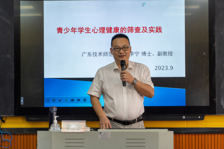 9月26日,为贯彻落实“双百行动”工作计划,广东技术师范大学副教授,硕士生导师李宁赴连南瑶族自治县民族小学,举办“广东技术师范大学(连南)心理健康教育专题讲座(第一期)”的主题讲座,来自县各学校的心理专、兼职教师近80人参加了培训。