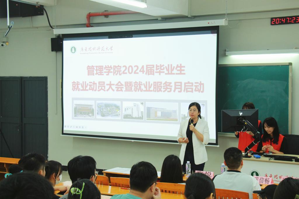 为落实学校就业工作部署,引导毕业生树立良好的就业观、择业观,在“黄金时间”帮助毕业生梳理未来发展脉络,10月13日,管理学院在白云校区第三教学楼209课室召开2024届毕业生就业动员大会暨就业服务月启动仪式。会议在线上线下同步举行,管理学院党委副书记王婷婷、博士辅导员杨璐老师、辅导员许素美老师、庄信畅老师出席本次会议,2024届全体毕业生参加会议。