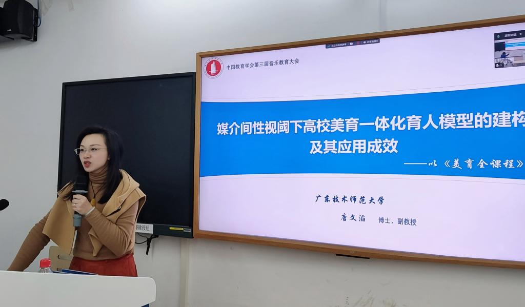 唐文滔以《媒介间性视阈下高校美育一体化育人模型的建构及其应用成效》为题在高校美育专题研讨会上作主旨发言。发言主要围绕其在校团委期间开发的《美育全课程》及其NSPC一体化育人模型建构、实施路径和应用成效进行了解构与分享,并就其开设的美育通识课《音乐跨学科学习》进行了介绍。同时,唐文滔还介绍了我校将美育教育课程列入全校专业的人才培养方案,并采用大数据评价技术支撑率先于省内自主研发美育课程评价管理数据平台、构建强化全员多元过程性评价体系的系列创新举措,获得了来自中国音乐学院、中国石油大学、上海外国语大学、东北师范大学等与会专家与同仁的高度赞誉,为我校美育工作赢得了广泛的行业认可度。