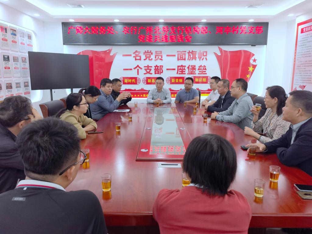 为贯彻落实新时代党的建设要求,促进党建与业务工作的融合,进一步加强银校村的交流与合作,夯实基层党建工作,以党建助推乡村振兴与高质量发展。11月10日,我校财务处党支部全体党员以及党委组织部党支部、法学与知识产权学院党委的党员代表赴韶关乐昌市坪石镇,与中国农业银行广州北秀支行机构部、坪石镇河丰村党支部开展“党建领航促发展,携手共进谱新篇”主题党建共建活动。