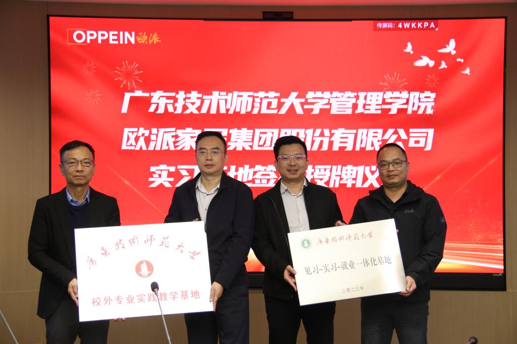 陈军代表学校与欧派家居集团股份有限公司签订“校企合作协议”,并进行了“实践教学基地”和“见习-实习-就业一体化基地”的共建授牌仪式,为接下来进一步加强校企合作,实现共赢发展打下了良好的基础。管理学院师生还参观了公司的电商中心和产品展厅,近距离、全方位了解企业文化、产品服务和发展前景。