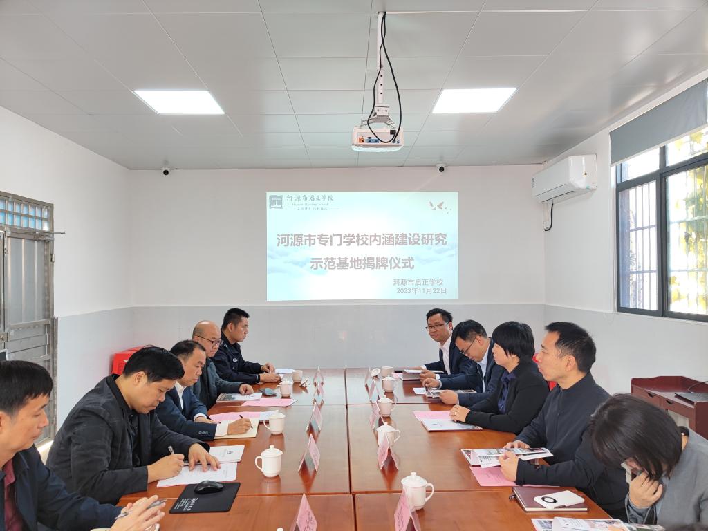 为深入贯彻习近平总书记关于教育的重要论述,提升河源市专门教育、专门矫治教育水平,推进专门教育学校建设和发展,11月22日,教育科学学院副院长冯帮及河源校区管委会相关负责人赴河源市启正学校举行专门学校内涵建设研究示范基地揭牌仪式。河源市教育局副局长黄汝荐、源城区工商联党组书记李晨蕾及相关领导出席并见证仪式,启正学校校长谢永刚主持会议。