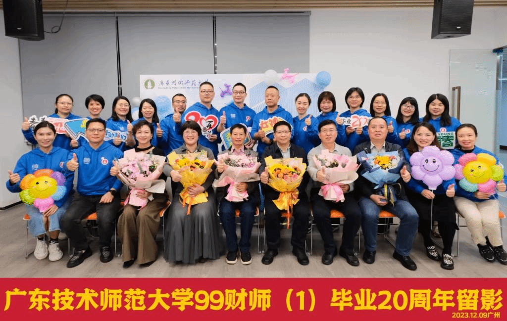 12月9日,原财经系1999级财师1班(简称“99级财师1班”)22位校友在东校区校友之家开展毕业二十周年聚会活动,法学与知识产权学院党委书记许建鑫(时任财经系辅导员、99财师1班主任),财经学院院长向凯(时任财经系专任教师),体育与健康学院党总支专职组织员刘荣军(时任财经系党支部副书记),财经学院副院长刘国庆(时任原财经系专任教师),财经学院专任教师、广东省职业院校教师素质提高项目管理办公室、广东省国家级职业教育教师创新团队建设项目秘书处主任邓兰兰(时任99财师1班主任),马克思主义学院专任教师刘绮婷(时任财经系辅导员)以及校友办相关负责人参加活动。