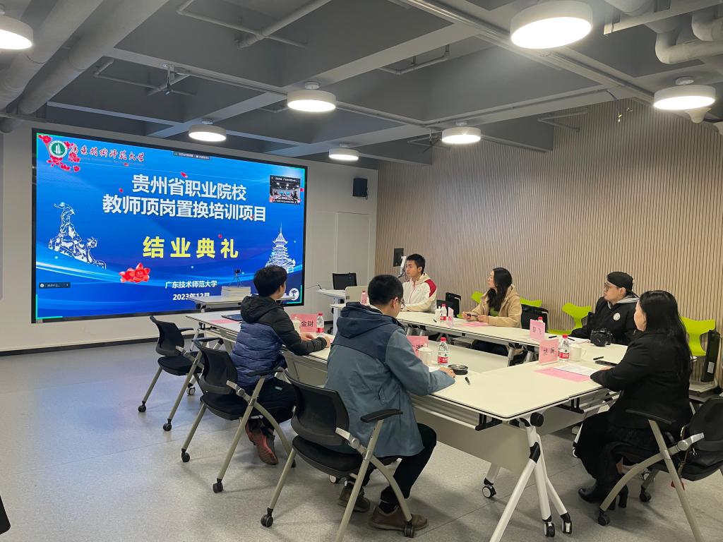12月16日,贵州省职业院校教师顶岗置换培训项目结业典礼在东校区工业实训中心采取“线下+线上”同步直播进行的方式举行。师资培训中心(培训学院)工作人员和各专业项目负责人、班主任以及贵州省职业院校教师顶岗置换培训项目全体贵州学员参加了结业典礼。