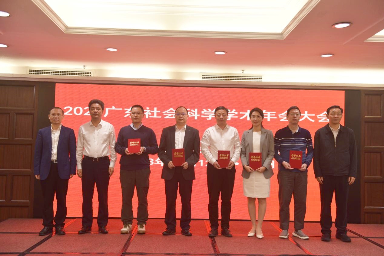 我校文学与传媒学院刘茉琳副院长及张栋副教授作为分会承办方及获奖论文作者代表出席此次大会。大会宣读了关于公布2023广东社会科学学术年会优秀论文的通知,此次年会的论文征集受到了学界的积极响应,经各分会场筛选推荐、专家评审,在1300余篇参选论文中评出优秀论文219篇。我校文传学院张栋副教授的论文《自媒体视域下中国传统神话的当代传播实践探究》荣获本次年会优秀论文评选一等奖,并受邀出席此次会议领取相关荣誉证书。