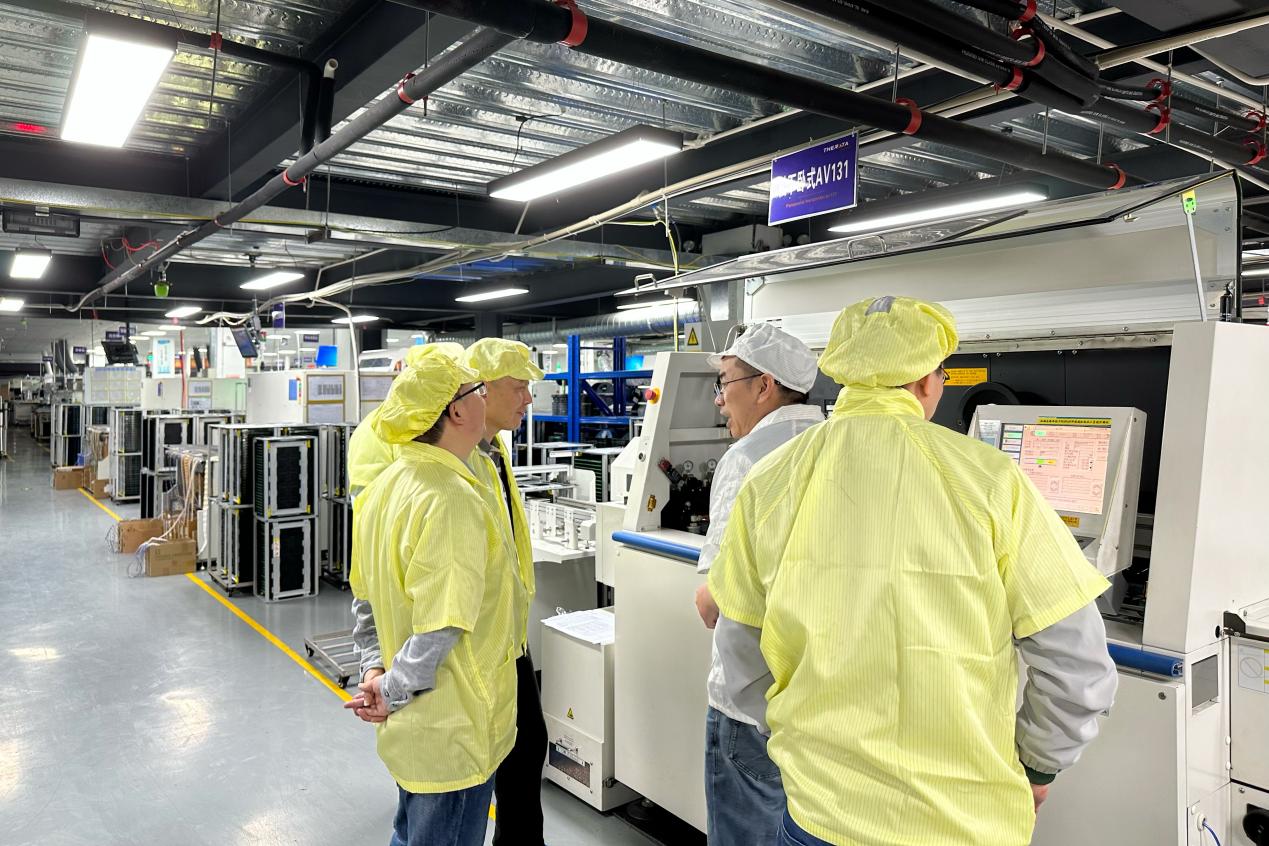 盛爽还带领学校一行参观了公司生产线装配车间,详细介绍了公司产品开发流程、检验检测能力与研发条件。