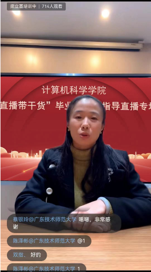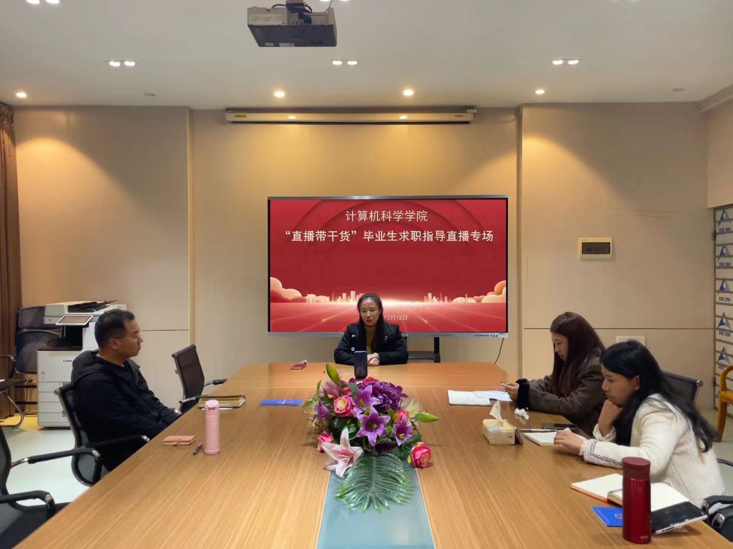 为贯彻落实习近平总书记关于做好高校毕业生就业工作的重要指示精神,进一步增强毕业生就业信心,切实帮助毕业生了解就业形势,明确就业目标,把握就业机会,3月11日晚,计算机科学学院开展“直播带干货”毕业生求职指导直播专场。学院党委副书记杨燕佳、全体辅导员及2024届全体毕业生参加此次直播专场活动。