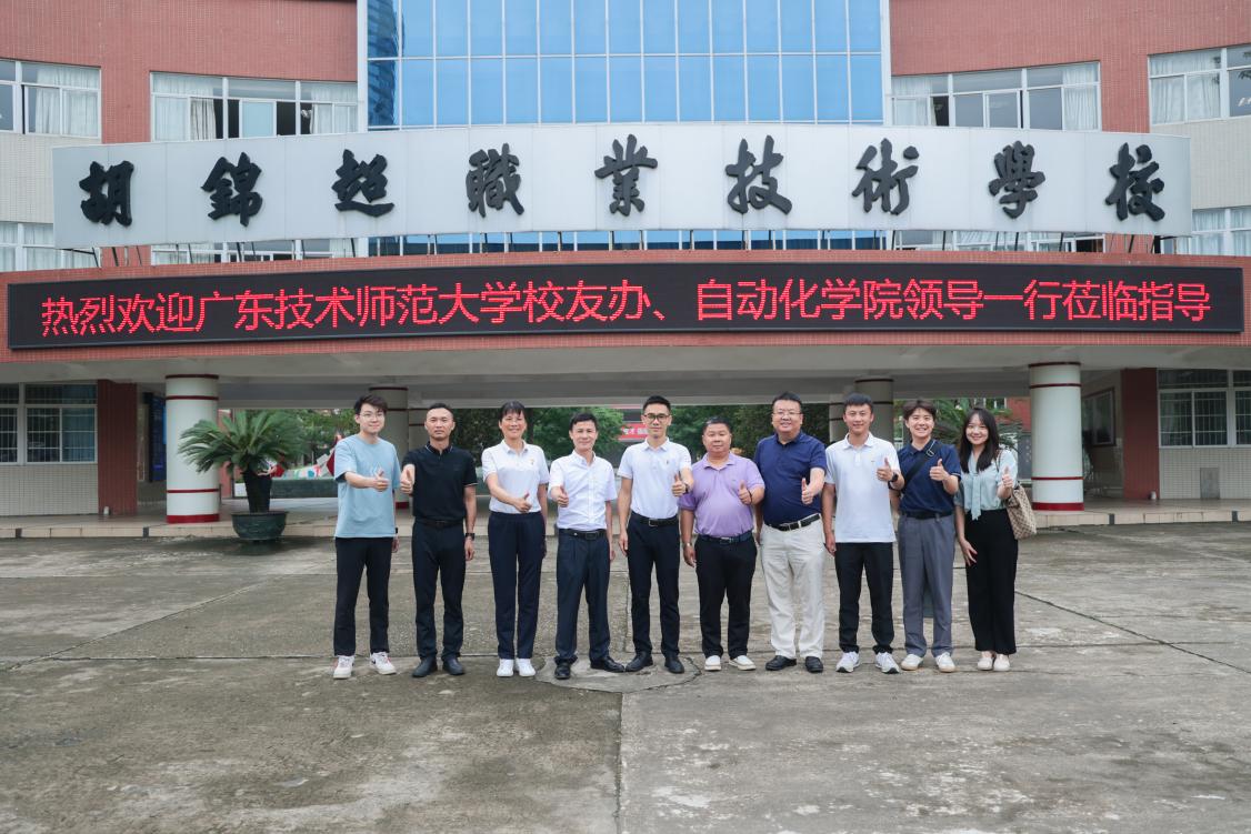 我校一行赴胡锦超职业技术学校(简称“胡职校”),受到该校党委书记、校长周凉凉,党委副书记黄惠玲及相关负责同志的热烈欢迎。在周凉凉带领下,大家参观了“今日锦观”“锦绣大道”等校园特色景观和李彬名师工作室、劳模创新工作室,并开展了座谈交流。周凉凉表示,非常感谢母校一直的关心关怀,感谢学校持续为胡职校发展输送优秀人才,目前该校在职校友有18位,其中很多已成长为学校领导和相关部门负责人。接着,他详细介绍了胡职校“锦心育人、育锦心人”办学理念,“锦字招牌、数字核心”发展战略和智慧校园、文化建设等方面的突出特色和优势。罗继全、蒋鹏为校友职业发展的成就感到由衷地高兴和自豪,对胡职校办学特色和办学水平表示高度肯定,并介绍了学校近年来的建设成果、发展愿景、学科建设、学生就业和自动化学院毕业生的情况。