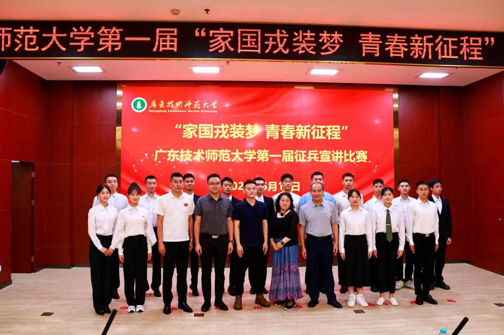 习近平强军思想是习近平新时代中国特色社会主义思想的重要组成部分,一直以来,学校党委高度重视大学生征兵工作,做到站位高、部署早、宣传广、工作实。6月18日下午,我校在东校区一教208报告厅举行“家国戎装梦,青春新征程”——广东技术师范大学第一届征兵宣讲比赛。本次比赛邀请省教育厅体卫艺处、省国防教育学会、省全民国防教育中心、学校武装部、文学与传媒学院等领导、老师担任评委。各学院负责征兵工作辅导员、学生代表共计200余人参加了此次活动。