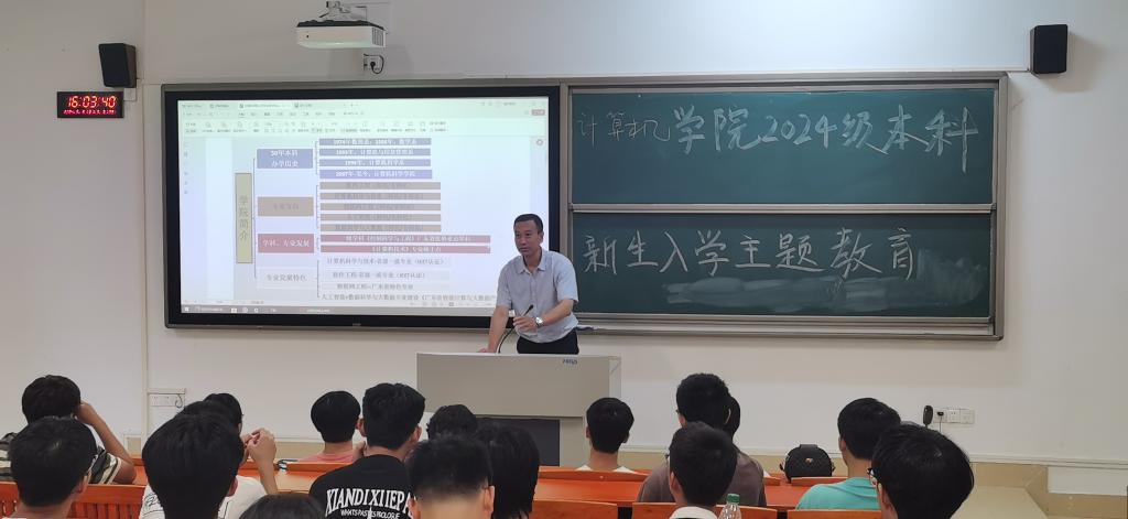 为深入学习宣传贯彻党的二十届三中全会精神,9月8日,计算机科学学院院长赵慧民教授在河源校区为2024级新生宣讲党的二十届三中全会精神。