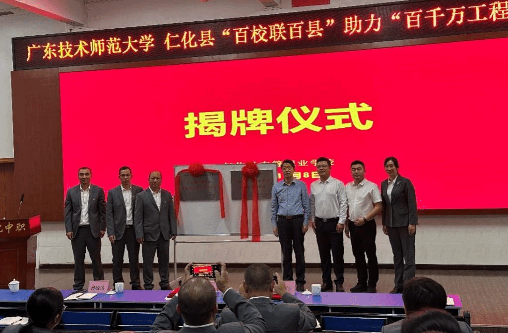 讲座后,汪永智教授、驻县服务队与仁化中职领导班子一同为该校新创建的“广东省中职学校思政课教学创新工作室”和“仁化县中等职业学校名班主任工作室”揭牌。