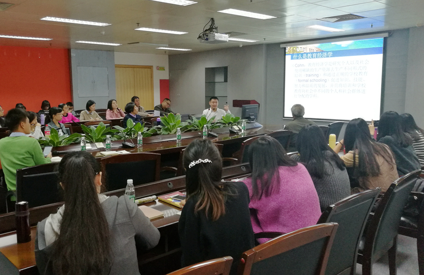 12月8日,清华大学教育研究院李锋亮副教授应邀来我院作题为“教育经济学的发展与前沿”的学术报告,报告在工业中心605会议室举行。学院副院长许玲、研究生处处长崔怀林、职业教育研究院专职副院长喻忠恩、教育科学与技术学院副院长吴天生等出席,职业教育研究院、教育科学与技术学院的教师和研究生聆听了报告。喻忠恩主持报告会。