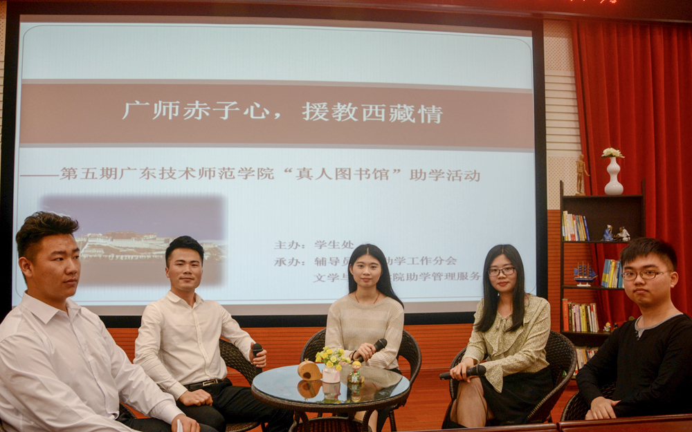 本期主题为“广师赤子心,援教西藏情”,4本“真人图书”依次为:管理学院辜良丹同学的《志愿梦无怨无悔》、教育科学与技术学院冯苑兴同学的《赠人玫瑰 手有余香》、汽车与交通工程学院余友斌同学的《援藏》和教育科学与技术学院陈阳达的《世界那么大我想去看看》。在“借阅课堂”里,成为“图书”的4名同学或回忆难忘的援藏之路,或畅谈援藏的奇闻趣事,或分享援藏的感悟与经验,让现场同学在听故事中如临现场。