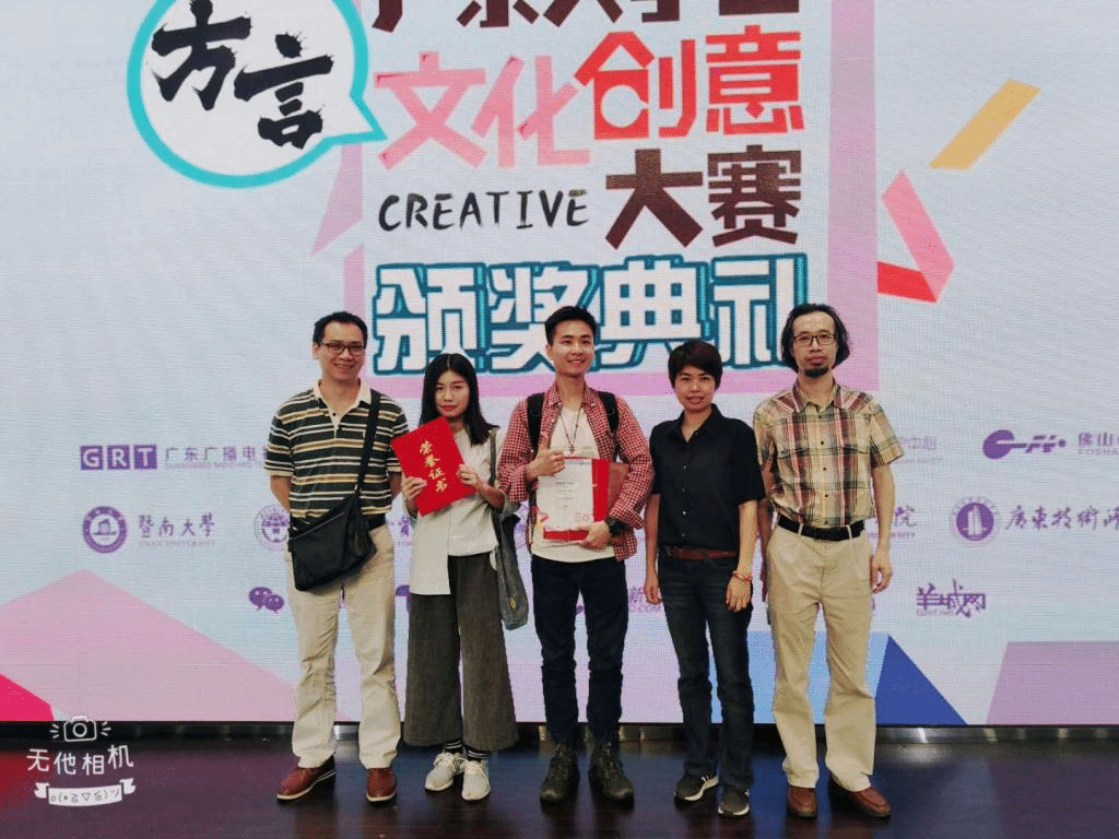 5月5号下午,由广东广播电视台南方卫视陈星工作室、岭南方言文化传承保护中心、佛山市图书馆联合主办的首届广东大学生方言文化创意大赛颁奖典礼在佛山市图书馆盛大开幕。我院美术学院15级视觉传达设计专业马灿奕同学、16级视觉传达设计专业吴苪莹同学荣获特别奖一项和优秀奖两项,马灿奕同学成为南方卫视陈星工作室签约设计师。