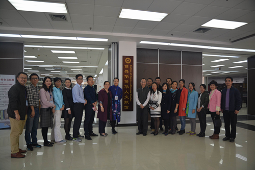 参观世界华侨华人文献馆后,图书馆一行前往多功能“悦赏厅”观看了“百年暨园,智慧前行”视频,现场体验了暨南大学图书馆先进的信息服务,了解和学习暨南大学图书馆信息服务工作开展的情况,还围绕图书馆新馆建设、特色文献建设、高校知识产权信息服务中心建设、合作战略以及党支部的党建工作对图书馆文化传承、信息服务工作的促进作用等主题与暨南大学图书馆党支部进行了深入的交流和研讨,对今后开展党支部共建工作、联合开展相关信息服务工作达成了初步意向。