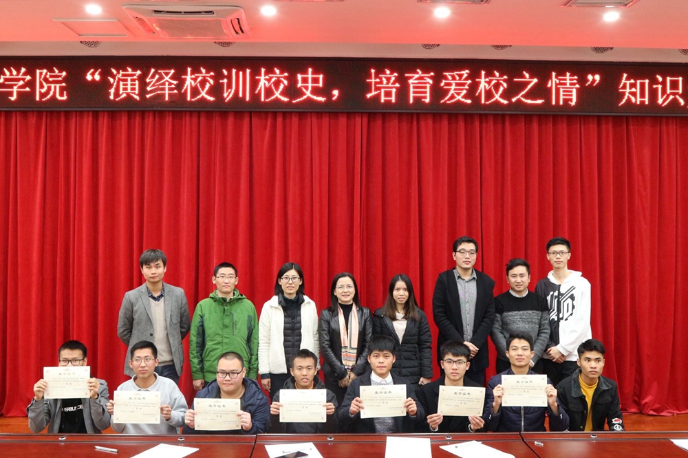 为加强校史校训教育,弘扬先辈潜心学术、乐育英才的崇高风尚,让学生深入领悟校训的深刻内涵,弘扬校训精神,机电学院在白云校区举办“演绎校训校史,培育爱校之情”知识竞赛。经过激烈角逐,2018级机械设计制造及其自动化(师范)1班黄子聪摘得桂冠;2018级机械设计制造及其自动化1班朱睿和2018级机器人工程4班邓崇斌获二等奖;2018级机器人工程2班张佳涛、2018级机械电子工程2班幸子扬、2018级机器人工程1班陈泽齐和2018级机器人工程2班单国颂获三等奖。