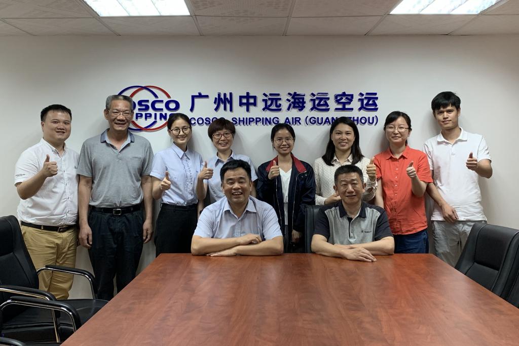 5月17日,管理学院党委书记陈宏伟率王婷婷、刘文静和徐辉文三位老师,一行四人走访了广州中远海运航空货运代理有限公司,探访校友,共商合作。