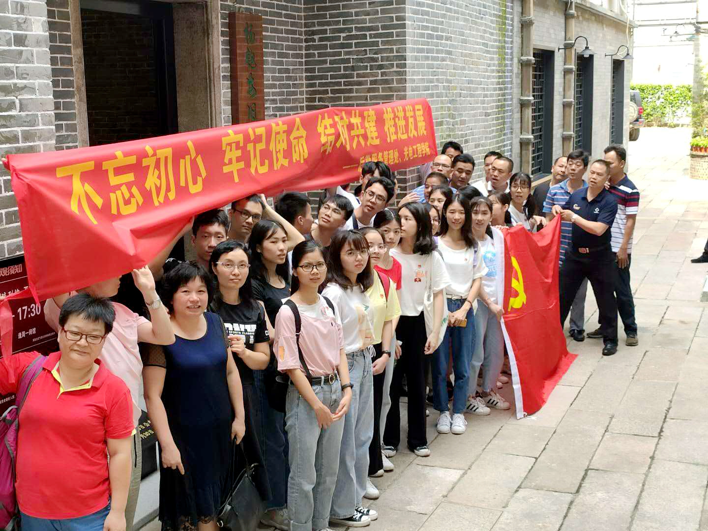 为贯彻落实中共中央印发的《中国共产党党员教育管理工作条例》,进一步加强党员的教育管理,把学习贯彻习近平新时代中国特色社会主义思想推向深入,6月28日下午,后勤管理服务处第三党支部和光电工程学院创新创业学生党支部在后勤管理服务处党总支和光电工程学院党总支主要负责同志的带领下,前往刚刚修缮完毕、向公众开放不久的杨家祠,学习革命先烈杨匏安的革命事迹,开展“不忘初心、牢记使命,结对共建,共谋发展”主题党日活动。