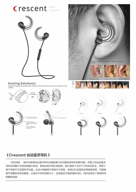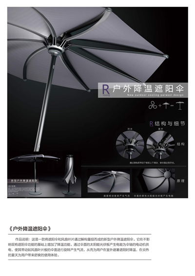 本次参赛以产品、视觉两大类作品为主,经过严格的评选,最终5件作品入选,其中教师4名、学生1名,分别是:谢新旺同学的产品设计作品《户外降温遮阳伞》获一等奖(指导老师:刘翔);鄢莉老师和刘翔老师的产品设计作品《Crescent运动蓝牙耳机》获二等奖;樊蓉老师的首饰设计作品《荔子》获二等奖;杨璇老师的视觉设计作品《相似的国旗》获三等奖;罗樾老师的海报设计作品《守规矩、倡廉洁、扬正气》获三等奖。