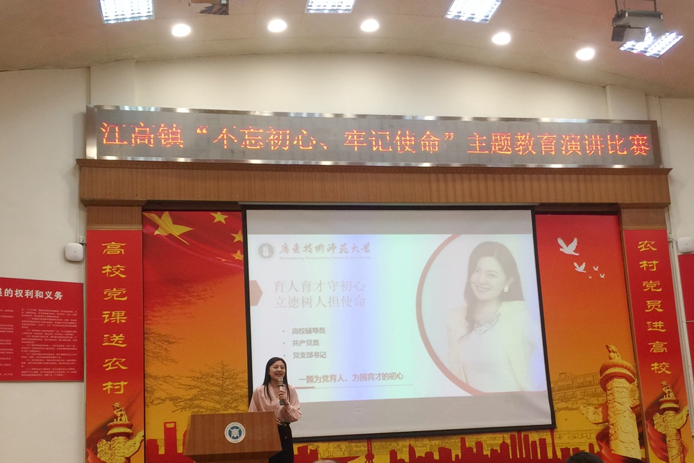 10月18日,广州市白云区江高镇“不忘初心、牢记使命”主题教育演讲比赛(第三场:企业、高校)在广东白云学院儒学堂圆满落幕。江高镇辖区内企业职工、高校师生及群众代表共近200人参加了此次活动。参加比赛的共有20多位选手,我校财经学院辅导员林敏获二等奖。