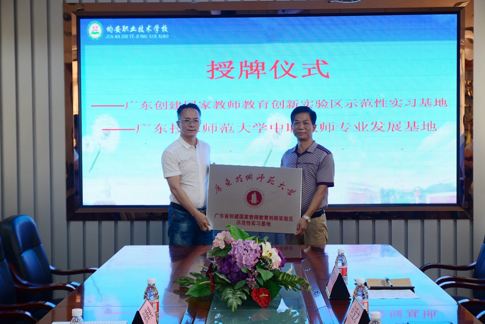 首先,举行了广东省创建国家教师教育创新实验区示范性实习基地、广东技术师范大学中职教师专业发展基地学校授牌仪式。均安职业技术学校校长曾珂、副校长何爱龙及相关教师、实习生参加了该活动。