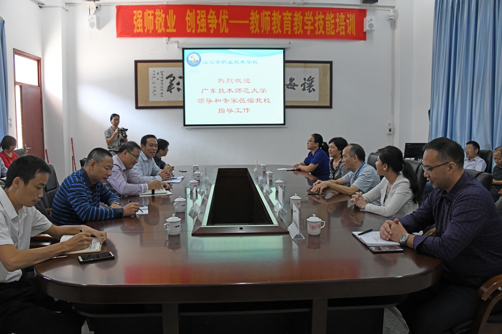11月1日,大家前往汕尾市职业技术学校进行送教下乡等师资培训咨询志愿服务活动,与该校领导班子和教师代表举行了座谈,对中职学校贯彻执行党和国家相关政策、师资培训需求及我校师资培训资金使用效益情况等工作进行了深入的调研。