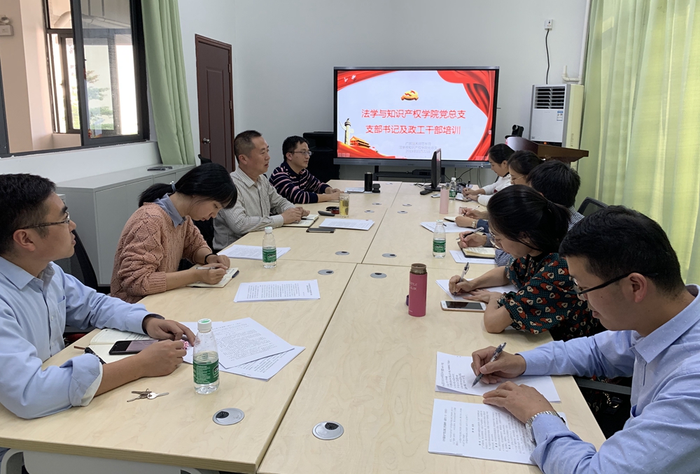 为进一步总结主题教育前期成果,提升党支部书记及政工干部业务能力,11月22日,法学与知识产权学院在白云校区学生活动中心301室召开2019年党支部书记及政工干部培训会。学院党总支书记许建鑫、副书记李雪斌、全体党支部书记及政工干部参加了培训,会议由许建鑫主持。