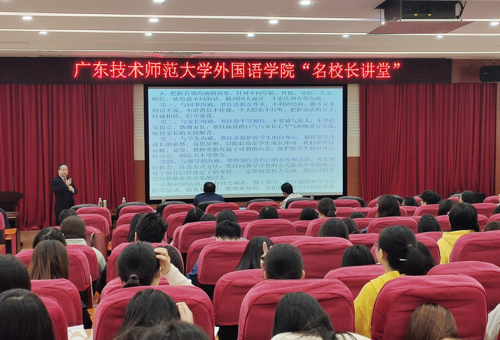 为进一步推动我院毕业生就业指导工作,帮助毕业生适应就业形势、熟悉就业政策、促进毕业生充分就业,12月16日,我院举办了“名校长讲堂”暨毕业生就业指导讲座。讲座由广州市113中学程印贵校长主讲,外国语学院党委书记赵丕强、副书记杨伟光、辅导员徐康康老师,以及2020届师范专业毕业生等参加了讲座。