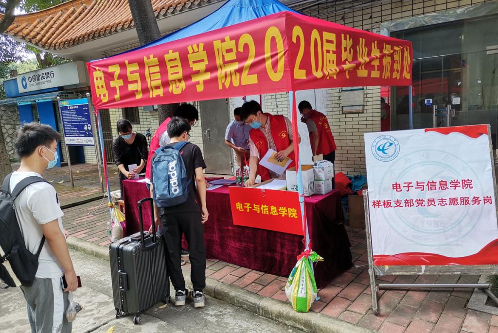 日前,电子与信息学院2020届毕业生陆续返校,为确保学生返校工作有序开展,电子与信息学院党委积极组织教工党员开展毕业生返校志愿活动,为毕业生提供提供贴心、暖心和爱心服务,充分发挥党员示范引领作用,坚定扛起助力返校工作的责任,帮助电信学子顺利“返航”。