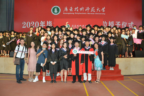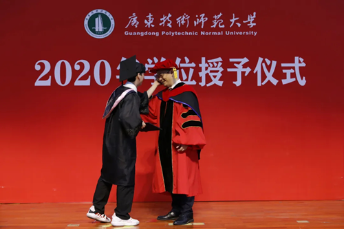由于受到疫情的影响,今年的集体毕业照取消,参加现场毕业典礼的名额有限,为此,学院特意设置了毕业典礼墙,并租借了导师服和学士服,由学院领导、系部主任、班主任等老师为同学拨穗和颁发毕业证学位证,尽量满足大多数同学的心愿,让疫情中的毕业季也充满仪式感。