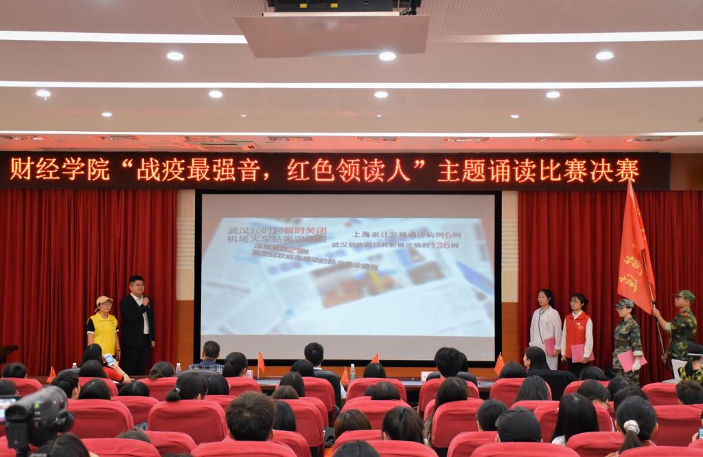 为深入学习新冠疫情防控工作中涌现出的先进事迹,更好弘扬与领悟在以习近平同志为核心的党中央领导下中华儿女在抗击疫情这场战“疫”体现出来的伟大民族精神,引导广大青年增强“四个意识”、坚定“四个自信”、做到“两个维护”,培育家国情怀与时代担当。10月23日,财经学院“战疫最强音,红色领读人”主题诵读活动决赛在白云校区三教104报告厅举行。经过激烈角逐,《战疫起,在一起》《我看见》作品获一等奖,《风雨,挡不住春天》等3件作品获二等奖,《“疫”心守护》等4件作品获三等奖。