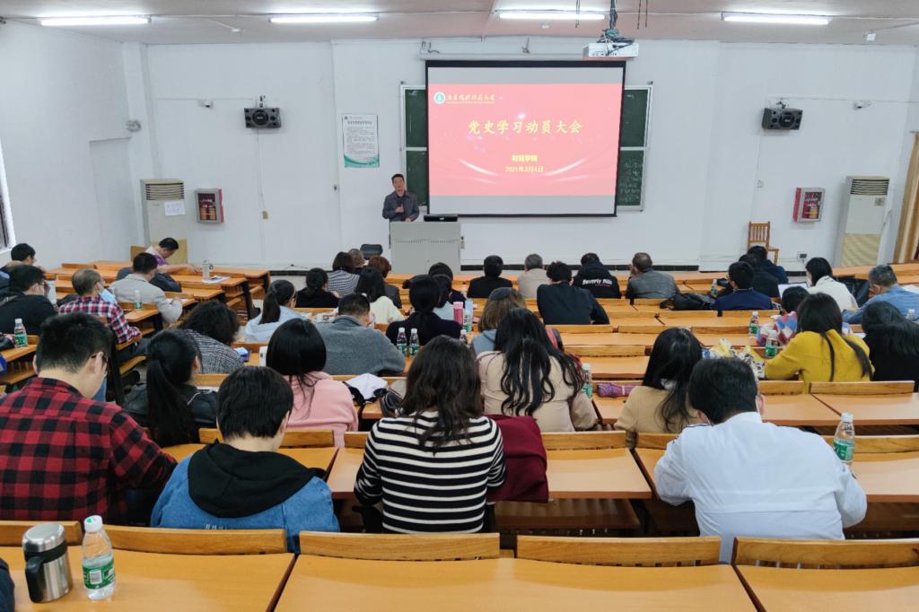 3月4日,财经学院召开新学期教职工大会暨党史学习教育动员大会,学习贯彻习近平总书记在党史学习教育动员大会上的重要讲话精神,传达学校内涵发展战略研讨会精神,科学谋划学院“十四五”发展规划和2021年度各项工作。财经学院领导班子作工作汇报,全体教职工参加会议。大会由学院党委书记吴松主持。