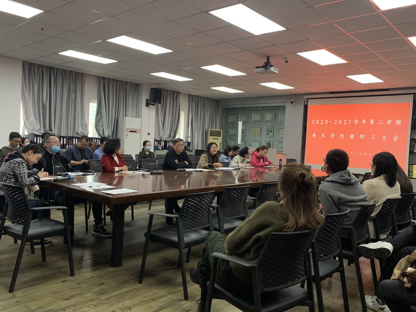 美术学院院长刘颖悟传达了学校新学期工作会议精神,并就学院新学期的工作进行了部署和安排。他强调,全院教职工要认真贯彻落实学校文件相关要求,主动融入“双一流”建设,以学科建设为中心,加大学科带头人引进力度,切实提高教学、科研、管理和社会服务水平,促进学院更大更好的发展,实现“十四五”的良好开局。