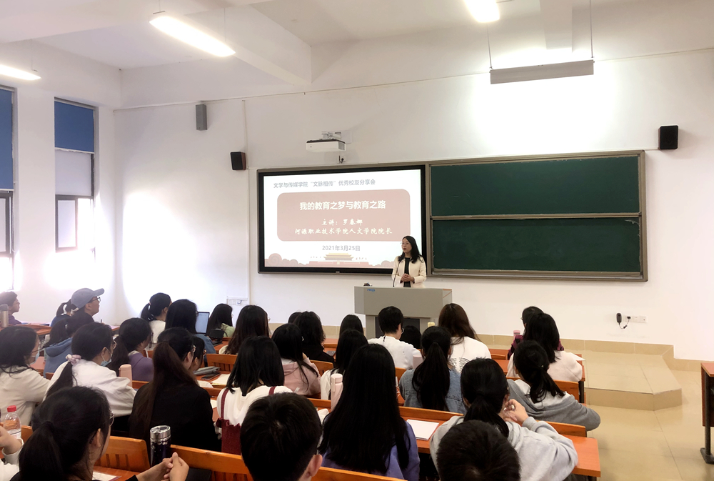 学院邀请了2001届优秀校友,广东省第十、十一、十二次党代会代表,河源职业技术学院人文与艺术学院院长罗春娜副教授开讲。在讲座中,她结合个人的学习经历和工作经历,通过自己的教育梦想和育人之路告诉同学们,具备历史的视野和正确的政治方向,才能提升个人精神境界,要坚持做到爱国、励志、求真、力行。只有志存高远,坚定信念,带着情怀,才能获得源源不断的前进动力,从而不断实现自我的超越。讲座让同学们憬然有悟,受益匪浅。
