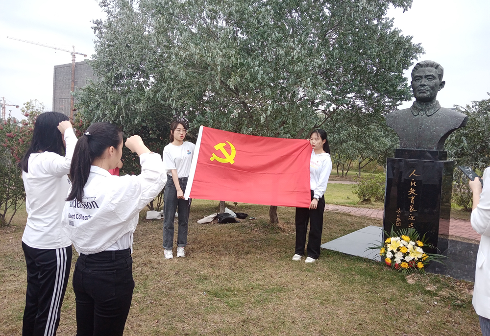 上午10时,王婷婷带领学生党员、入党积极分子,在汪达之塑像前庄严肃立,向汪达之同志敬献鲜花、鞠躬敬礼,重温入党誓词,并瞻仰汪达之塑像,诵读纪念碑文。大家一起追思先辈事迹,缅怀先辈崇高精神,表达无尽的怀念和崇高的敬意。随后,王婷婷为学生党员、入党积极分子上了一堂以“学习汪达之精神,做‘六有’新青年”为主题的现场党课。要求学生党员和入党积极分子学习汪达之同志“捧着一颗心来,不带半根草去”的奉献精神,对国家、民族的赤诚之心,对教育的忠诚之心和对学生的仁爱之心。要认真开展好党史学习教育,做到学史明理、学史增信、学史崇德、学史力行,要按照习近平总书记对新时代中国青年提出的要“树立远大理想”“热爱伟大祖国”“担当时代责任”“勇于砥砺奋斗”“练就过硬本领”“锤炼品德修为”的六点要求,努力提升个人综合素质,把家国情怀融入不懈的奋斗中,用青春之我创造青春之中国、青春之民族。