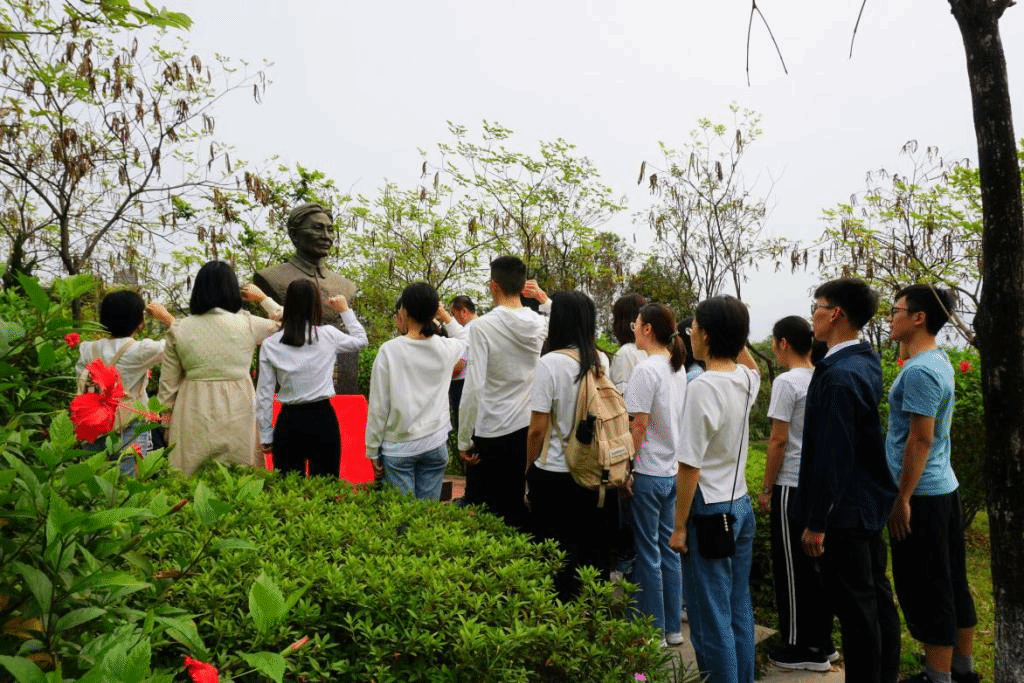 最后,许建鑫带领党员们在罗明同志塑像前庄严重温入党誓词。他表示,此次“清明追思•缅怀罗明同志”活动,是学院学习党史、坚定理念信念,传承革命先烈红色精神的重要方式,希望全体师生自觉把思想和行动统一到习近平总书记重要讲话精神和党中央的决策部署上来,认真学习革命先辈的英雄事迹,不断感悟革命先辈坚定理想信念、全心全意为人民,不惧生死、艰苦奋斗的宝贵精神,并以实际行动传承先烈精神,强化使命担当意识,不断推动法学与知识产权学院高质量发展,用实际行动献礼建党100周年。
