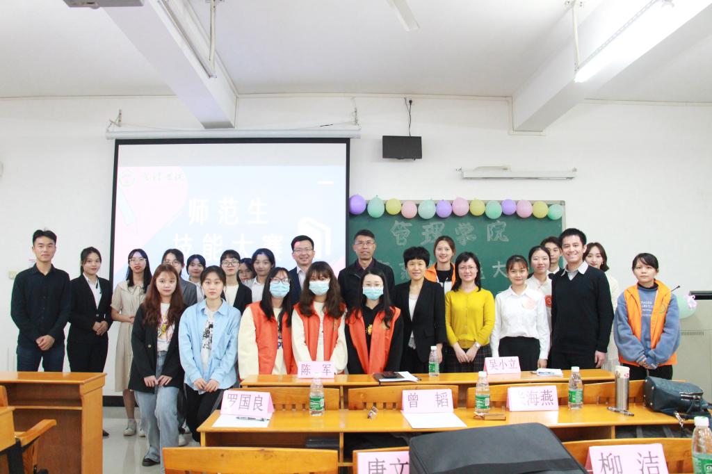 为进一步提升师范生专业技能,增强师范生从教能力,4月9日,管理学院在白云校区3号楼503教室举行了“掌师之技能,育筑梦之才”师范生技能大赛。莅临本次比赛的专家评委有管理学院党委书记陈军、副院长吴小立、旅游管理系主任张海燕、旅游管理与服务教育系专业负责人曾韬,以及物流管理系主任罗国良。