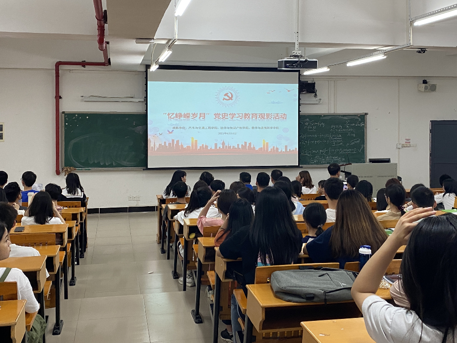 为深入推进党史学习教育的开展,激发学生的党史学习教育热忱,引导学生“学史明理、学史增信、学史崇德、学史力行”,汽车与交通工程学院、法学与知识产权学院、数学与系统科学学院于4月14日下午在白云校区第三教学楼409教室联合举办“忆峥嵘岁月”党史学习教育观影活动。相关学院党委(总支)副书记、辅导员、学生党员及入党积极分子参加了此次活动。