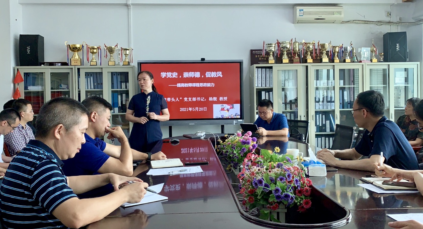 5月20日,电子与信息学院在一教1312会议室举行了“学党史•崇师德•促教风”活动,邀请“双带头人”党支部书记杨舰教授为全院教师讲授专题党课,学院全体班子成员、教师聆听了此次党课。党课由学院党委书记罗旭辉主持。
