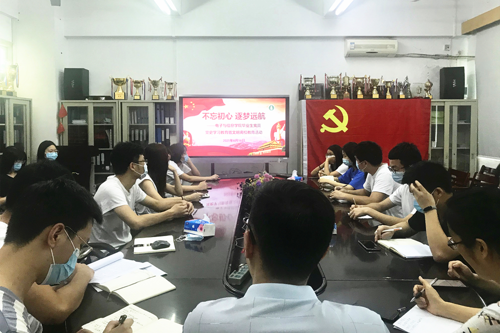 又悉,6月16日,电子与信息学院召开“不忘初心 逐梦远航”2021届毕业生党员党史学习教育暨文明离校教育活动,学院负责人为全体毕业生党员上了离校前的“最后一堂党课”,并提前对文明离校工作做出了部署,希望毕业生党员们在挥别母校之际,继续发挥好党员的的先锋模范作用,帮助全院毕业生安全有序地离开学校。