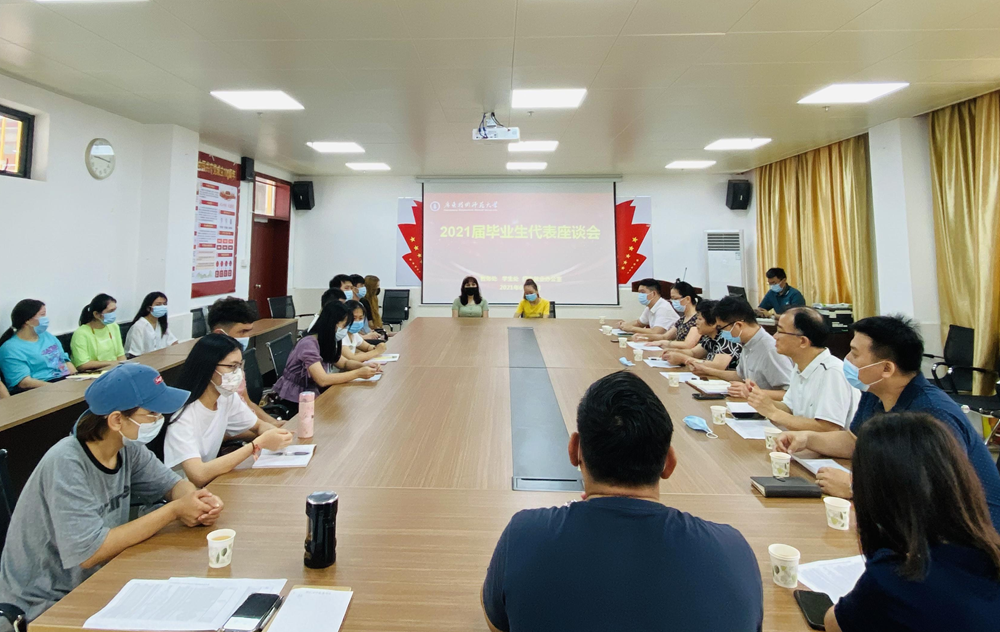 6月18日,我校在白云校区召开首场2021届毕业生代表座谈会。教务处、学生处、武装部等部门相关负责老师,各相关学院党委副书记、辅导员与19名退役士兵、少数民族毕业生代表围坐一堂,共话离别。