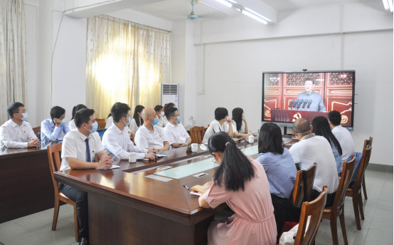 7月1日上午,庆祝中国共产党成立100周年大会在北京天安门广场隆重举行。中共中央总书记、国家主席、中央军委主席习近平发表重要讲话。习近平总书记在大会上的重要讲话在民族学院党总支引发热烈反响。民族学院党总支组织师生在第一教学楼1411会议室集中收看庆祝中国共产党成立100周年大会直播,党员代表、入党积极分子代表、优秀博士教师代表等二十余人参加。